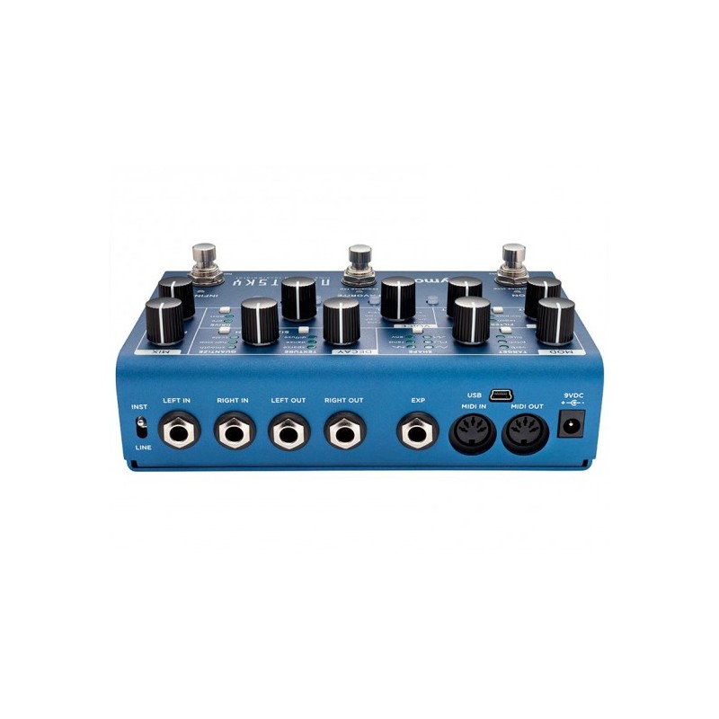Lo Strymon NightSky offre 3 tipi di riverbero per ottenere diverse texture ambientali. Sezione di modulazione con diverse forme d’onda per modulare il riverbero o i filtri di tono. Sezione di tono per modificare i bassi e gli alti del riverbero. Sezione vocale per migliorare lo spettro Shimmer regolabile per aggiungere pitch shifting fino a 1 ottava. Glimmer dinamico che migliora le frequenze basse e alte degli armonici per texture di tipo sintetizzatore. Guadagno pre o post per aggiungere saturazione armonica al riverbero. Dimensione del nucleo del riverbero regolabile per aumentare o diminuire lo spazio per i riflessi. Controlli indipendenti di riverbero e dry. Sequencer a passi per programmare variazioni di intonazione del ritmo. Accedi a 16 dal pannello centrale e a 300 tramite MIDI. Selettore di ingresso per strumento con livello di ingresso chitarra e linea quando utilizzato come loop di effetti di un amplificatore, con un sintetizzatore o un mixer. Connessioni: ingressi e uscite stereo, ingresso per pedale di espressione, MIDI In/Out e porta USB. True bypass o bypass analogico bufferizzato. Alimentatore incluso